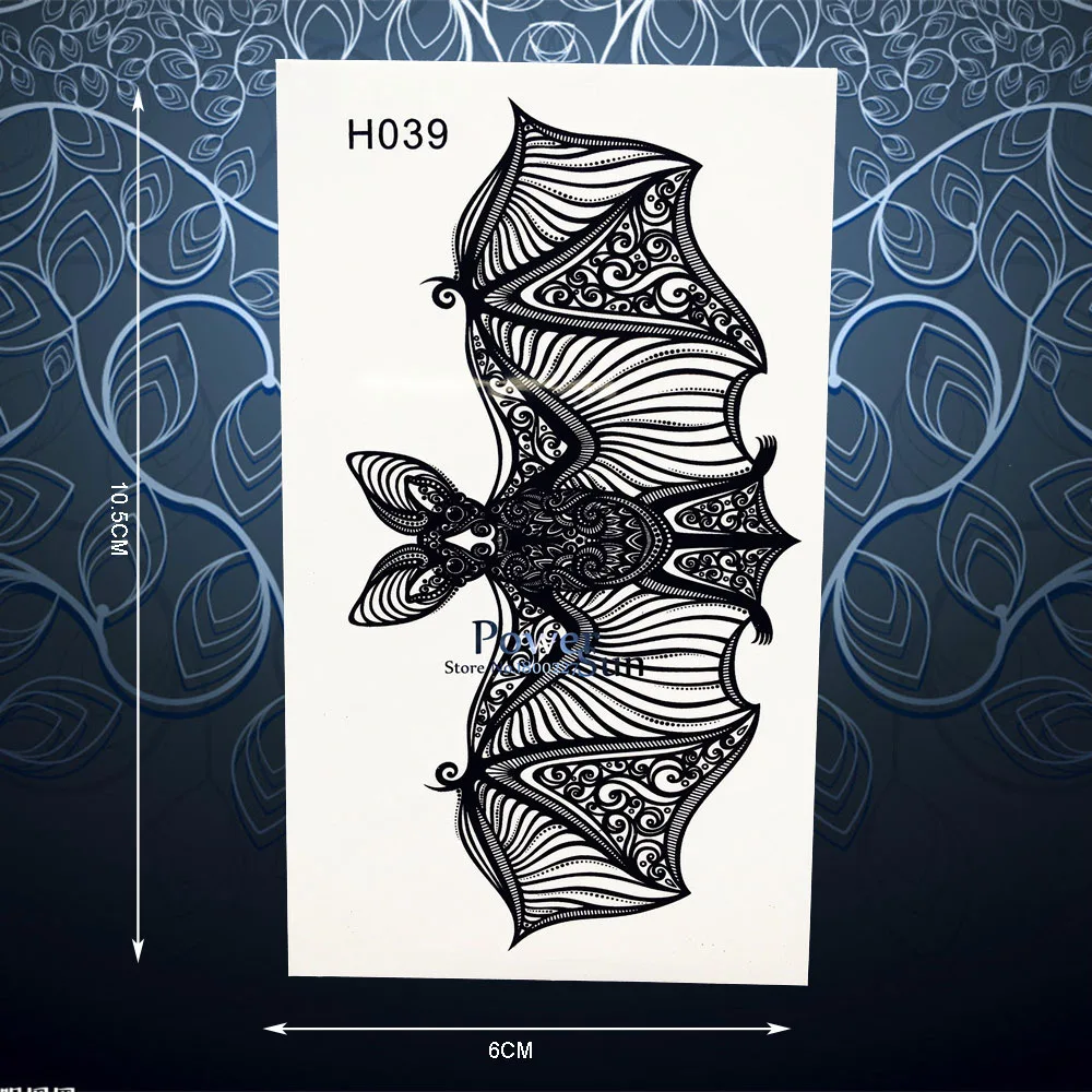 Beauty Makeup Temporary Tattoo Sticker Women Lace Bat Henna Charms Decals Waterproof Body Arm Art Fake Bat Tattoo Stickers Ph039